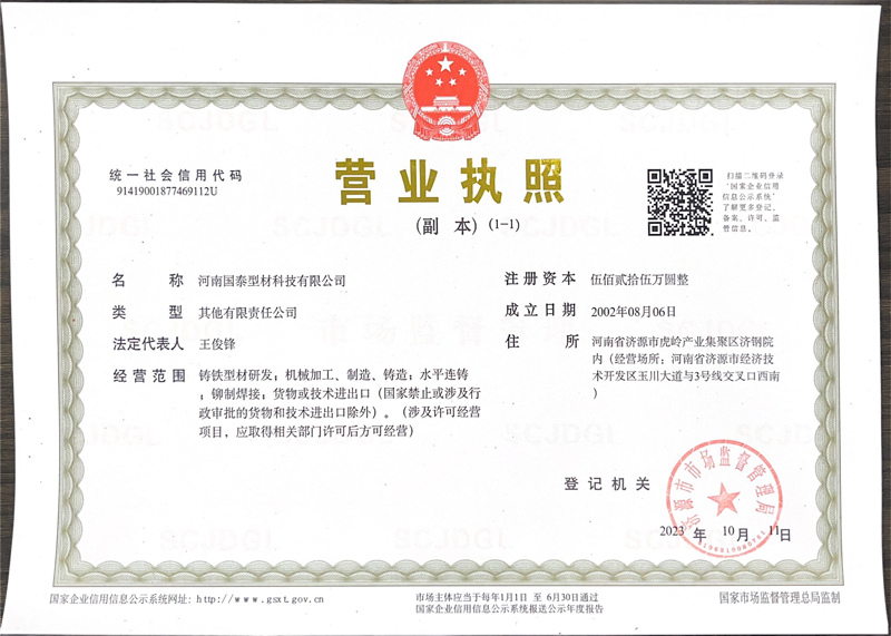 河南國泰型材科技有限公司免費為大 家提供關于鑄鐵型材,水平連鑄鑄鐵型材,球墨鑄鐵型材相關資訊