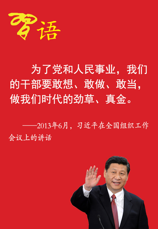 “疾風(fēng)識(shí)勁草,烈火見真金?!睘榱它h和人民事業(yè),我們的干部要敢想、敢做、敢當(dāng),做我們時(shí)代的勁草、真金。