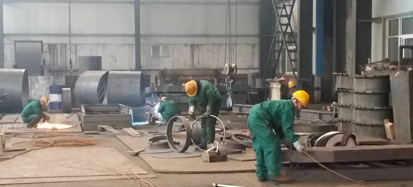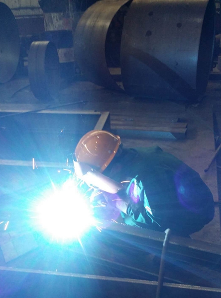 在班長劉學斌的帶領下,鉗工班全體成員每天加班加點趕活。正值數九寒天,室外溫度已到零下七度以下,室內現場大家干的卻是熱火朝天。焊光閃爍,焊花飛揚,多臺焊機滿負荷工作;作為第一道下料工序的等離子氣割采用兩班運行,人停車不停,深夜12點依然照常運轉,為各種工件的按時完成做足準備。