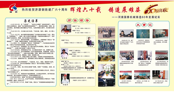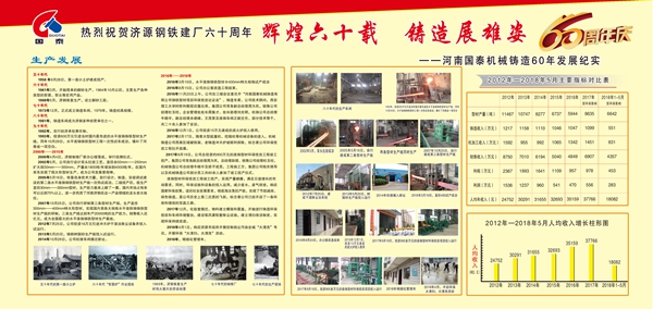 在濟(jì)源鋼鐵喜慶六十華誕之際,公司舉辦主題為“輝煌六十載 鑄造展雄姿”的六十年發(fā)展紀(jì)實(shí)版面展覽,為濟(jì)鋼六十年獻(xiàn)上一份獨(dú)特的厚禮。