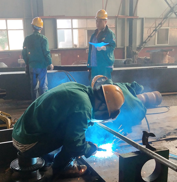 高溫下,鉗工們工作起來更加辛苦。電焊時火花飛濺,雖然隔著焊帽,但隔不住熱浪,熏得滿臉發(fā)燙,豆大的汗珠從臉上滑落,汗水濕透了衣衫。風扇把熱空氣吹成了熱風,顯得更加燥熱。即便是這樣,他們依然沒有停止手上的工作,沒有絲毫懈怠。
