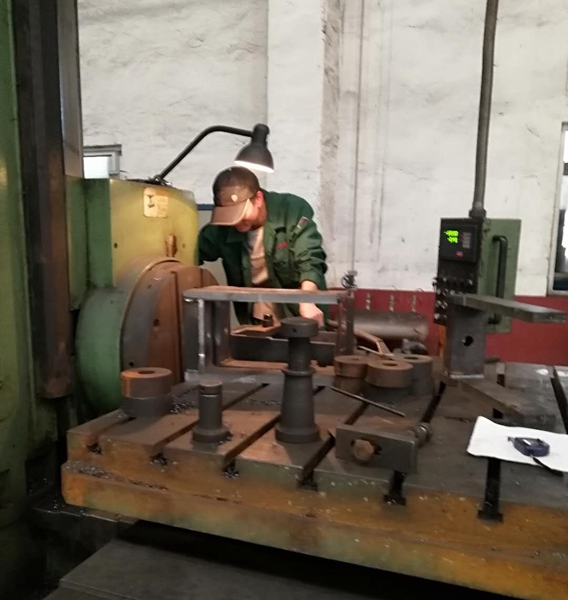 我們的女員工充分詮釋了“女漢子”的含義,一人同時(shí)操作四臺(tái)鋸床,同時(shí)發(fā)力,吊裝、安防、裝夾、輸入?yún)?shù)、開動(dòng)運(yùn)行。在她的精準(zhǔn)操作下,四臺(tái)設(shè)備你追我趕,吹響進(jìn)攻號(hào)角。各式車床飛速旋轉(zhuǎn)、鐵屑四濺,暗青色的毛坯在刀尖下逐漸脫去外衣,閃現(xiàn)出耀眼的鋼鐵本色,車燈燈光透過車工臉上晶瑩剔透的汗珠,折射在工件上,色彩交相輝映。專注、堅(jiān)定的眼神注視著刻度盤和游標(biāo)卡尺,在他們眼里,一絲一毫的偏差都是不可逾越的紅線。銑床、鏜床、龍門刨飛轉(zhuǎn)的刀盤迅捷滑過毛坯表面,鐵屑在空中飛出美麗的“華爾茲”。焊光閃閃,氣割在鋼板上平穩(wěn)橫移,一件件工件應(yīng)聲而落,圖紙上的一個(gè)個(gè)線條在鋼板上精準(zhǔn)實(shí)現(xiàn)。