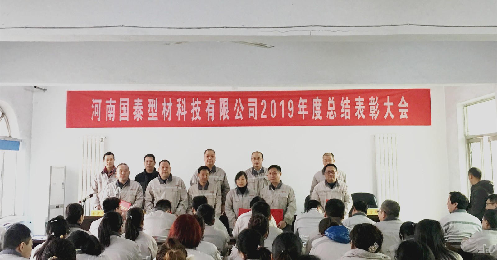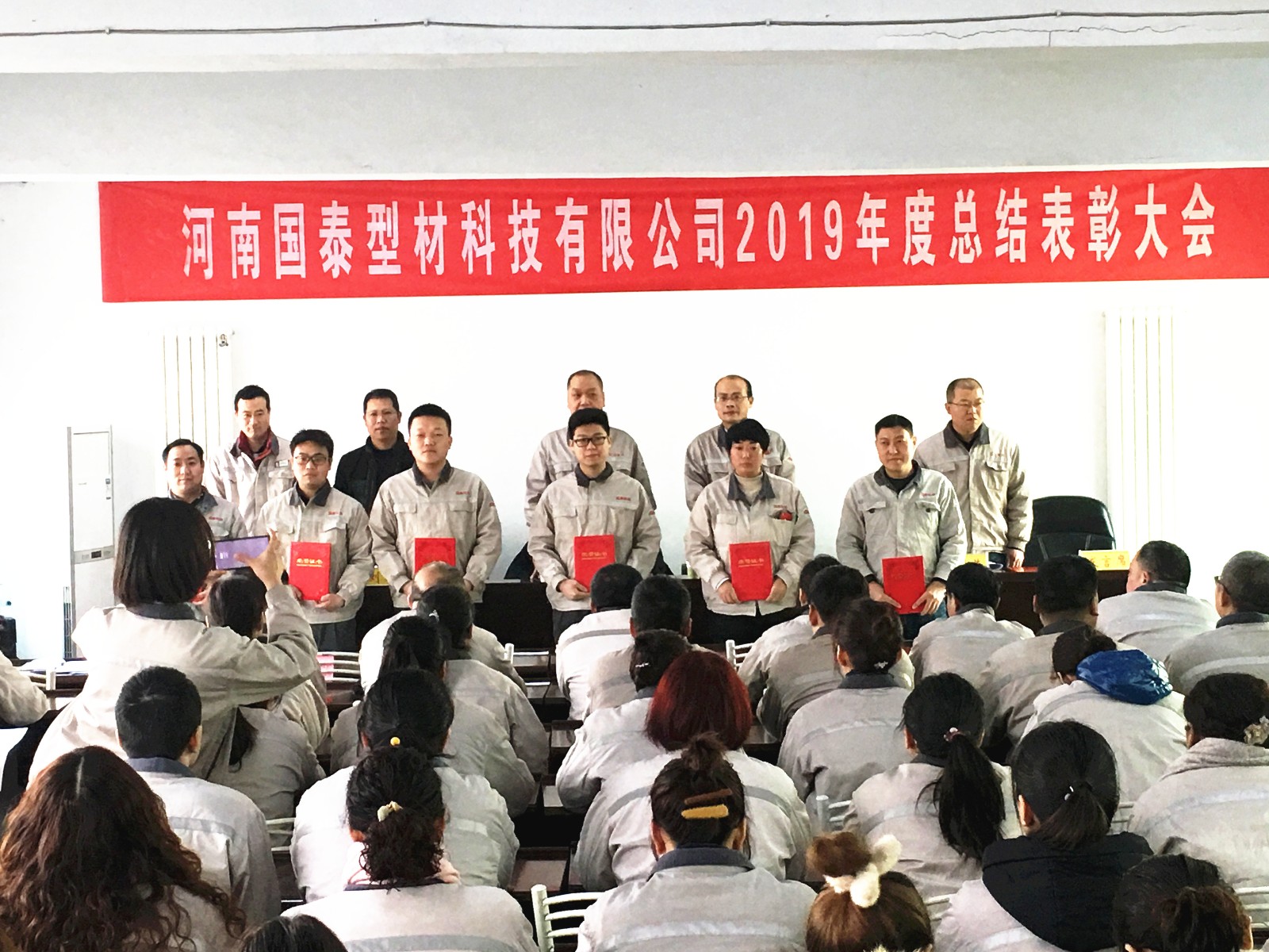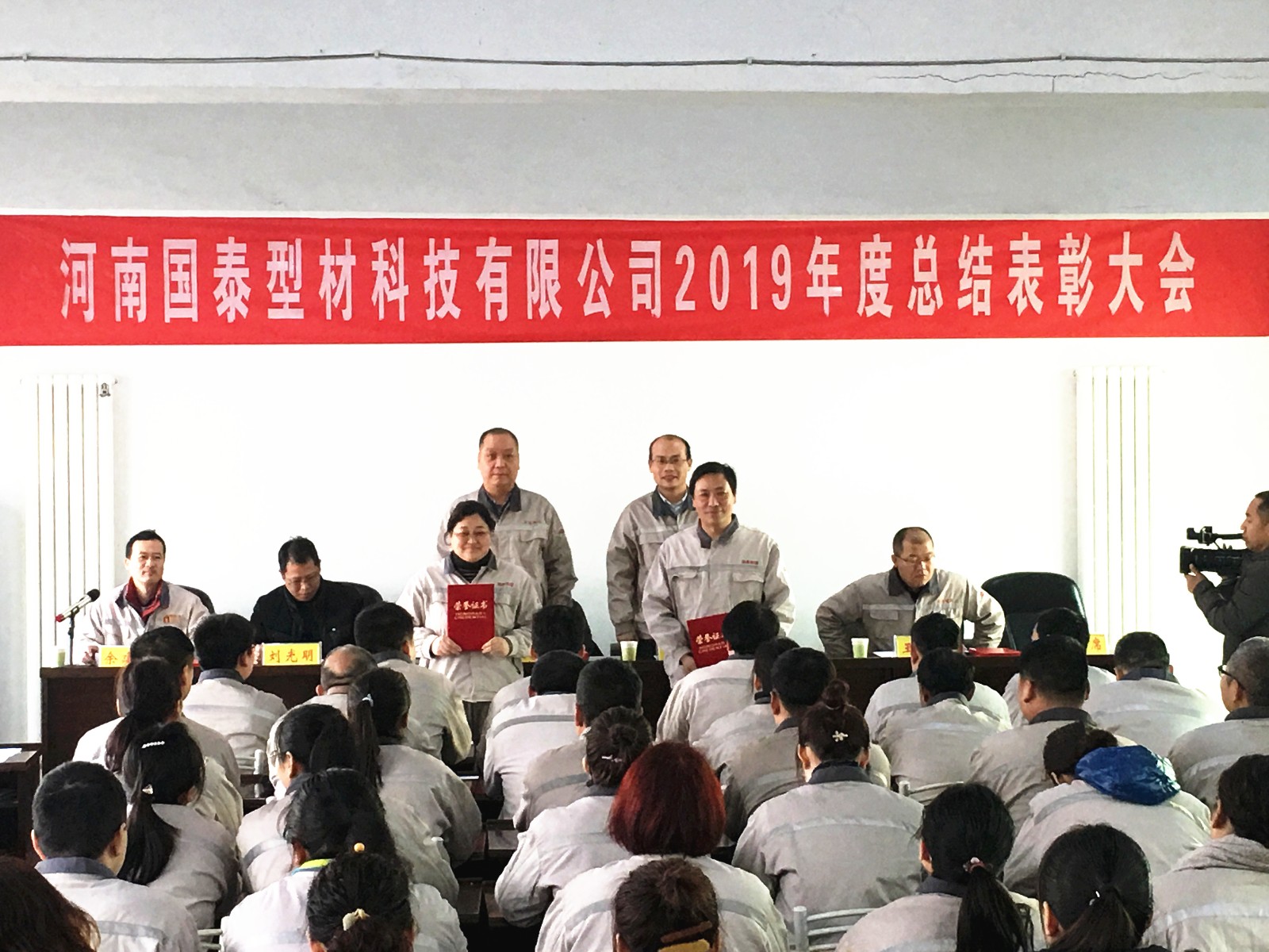 2020年元月18日上午,國泰型材在公司三樓會議室召開2019年度總結(jié)表彰大會。集團(tuán)公司副總經(jīng)理周為民、企管處副處長劉光明,型材公司經(jīng)理牛曉宇及班子成員、公司中層、先進(jìn)集體及個人、員工代表共計百余人參加了表彰會。會議由副經(jīng)理余建峰主持。