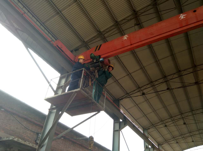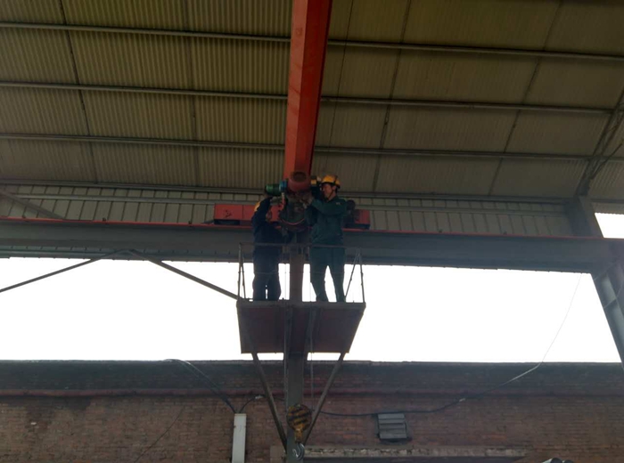 25號(hào)下午剛上班,連鑄車間成品西庫電葫蘆鋼絲繩被絞卡住,無法起吊。維修電工立即趕到現(xiàn)場(chǎng),上到天車平臺(tái)搶修。王茂榮副總經(jīng)理趕到現(xiàn)場(chǎng)指揮。
